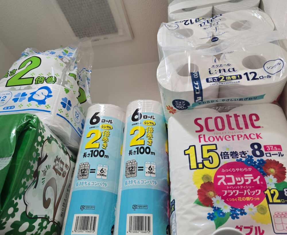 トイレットペーパー・鍋つゆ,とにかく必要になって保管できるものは買っておきます。