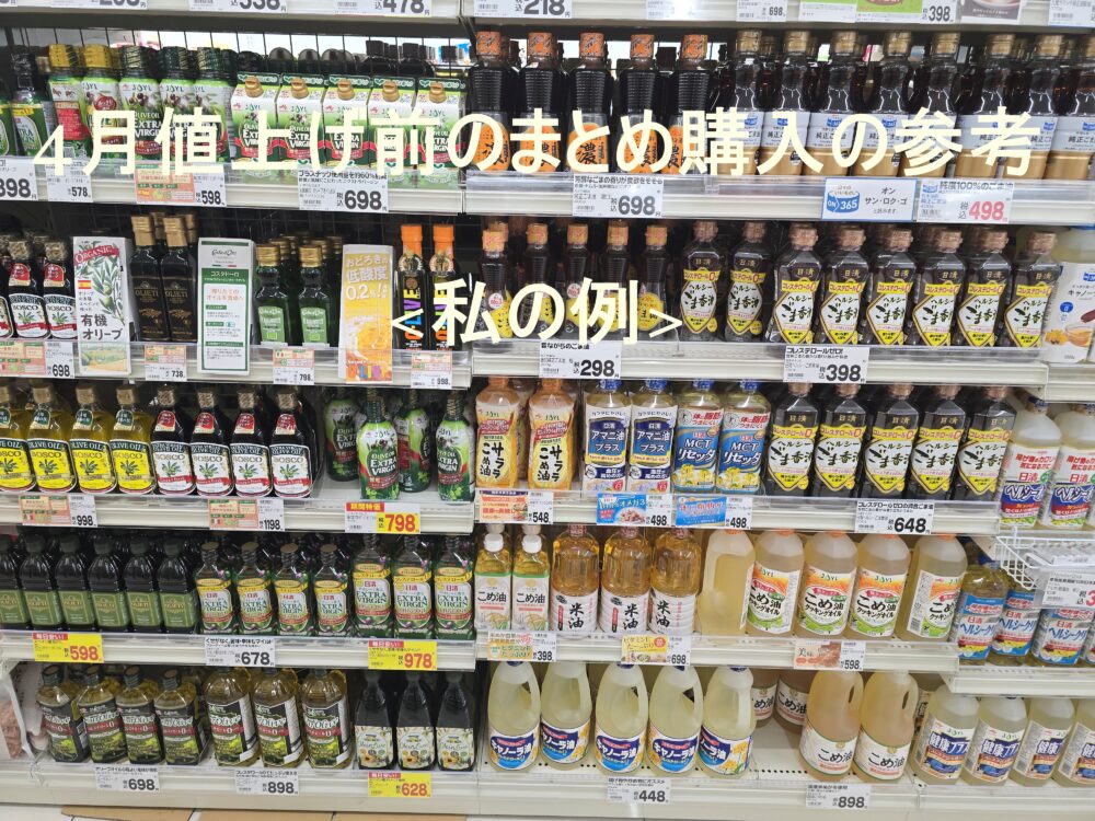 別ページサイトで2026年4月からの値上商品・値上げ幅をわかる範囲で記載しています。これに対して、私自身がどのように『対策』を打っているのか実際の写真とともに説明していきます。