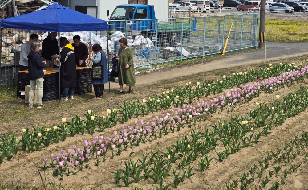 すぐ横の畑で『チューリップ』を5個で¥500で販売していました。買って帰って、庭に植えるか、鉢に植えるかするようです。