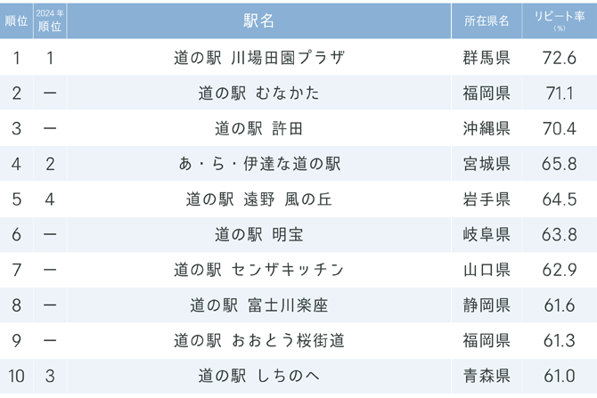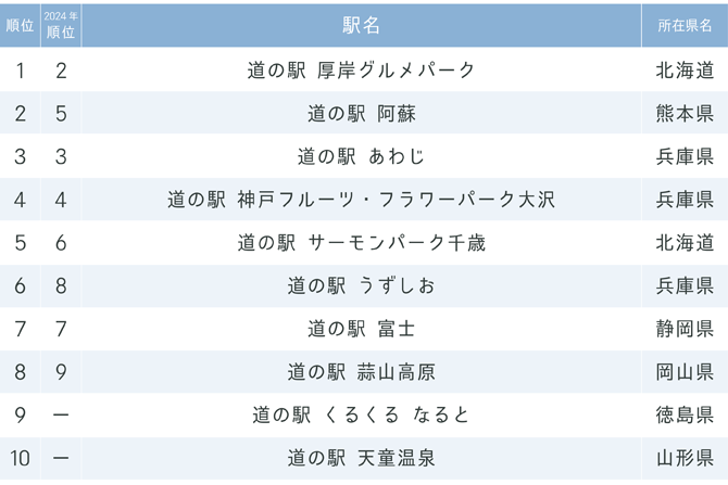 『じゃらん』もう一度利用したい道の駅ランキング2025