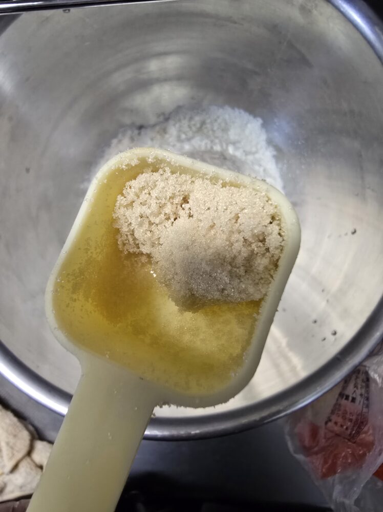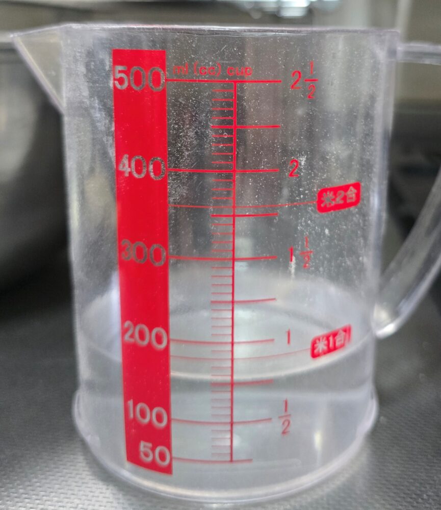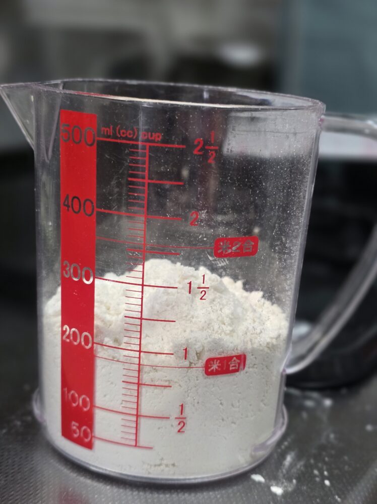 ぱさぱさの粉に水を加えてしっかりと混ぜ合わせるというのが結構大変です。