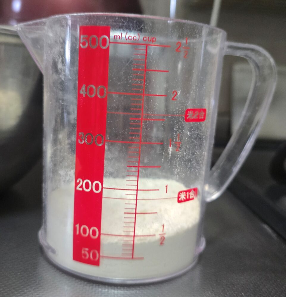 ①小麦粉:200g⇒薄力粉があると思ったらなんと『中力粉』しかありませんでした。<1キロ/200円>⇒今回の分:40円