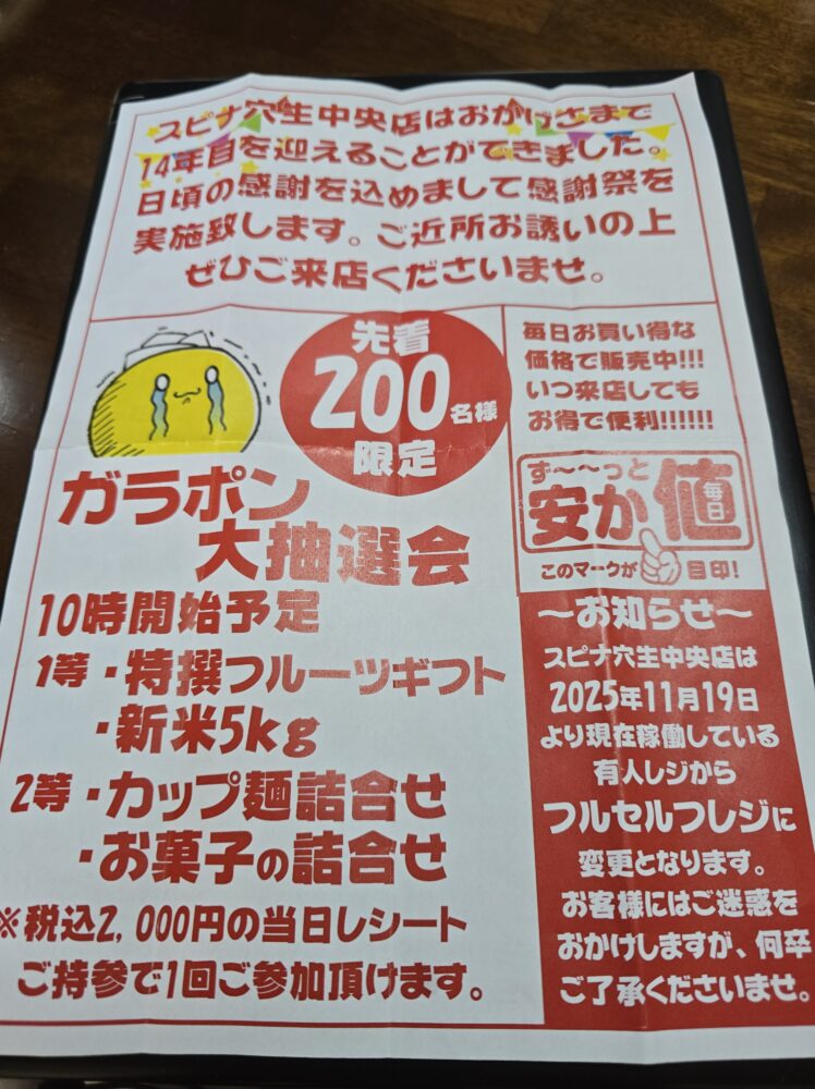 また、『ガラポン抽選会』があるようです。次回は¥3000以上、先着300名とさらにハードルが高くなっていますが。