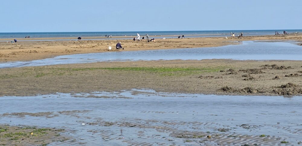 潮が引くと浅瀬の遠くまで行く人がとても多いですね。私は戻ってくることを考えるとあまり、奥までは行きませんでした。